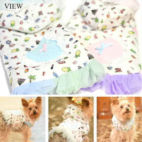 おしゃれかわいいデザインポップな柄と所どころに使われているフリルやレースがとってもキュート。