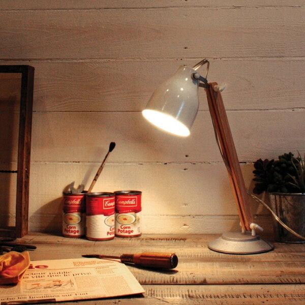木のぬくもりが感じられる北欧テイストのデザイン『ファルン デスクランプ』スチール×ウッド×チェストアイアン ちょっぴりレトロな異素材を組み合わせ モダンな雰囲気に。